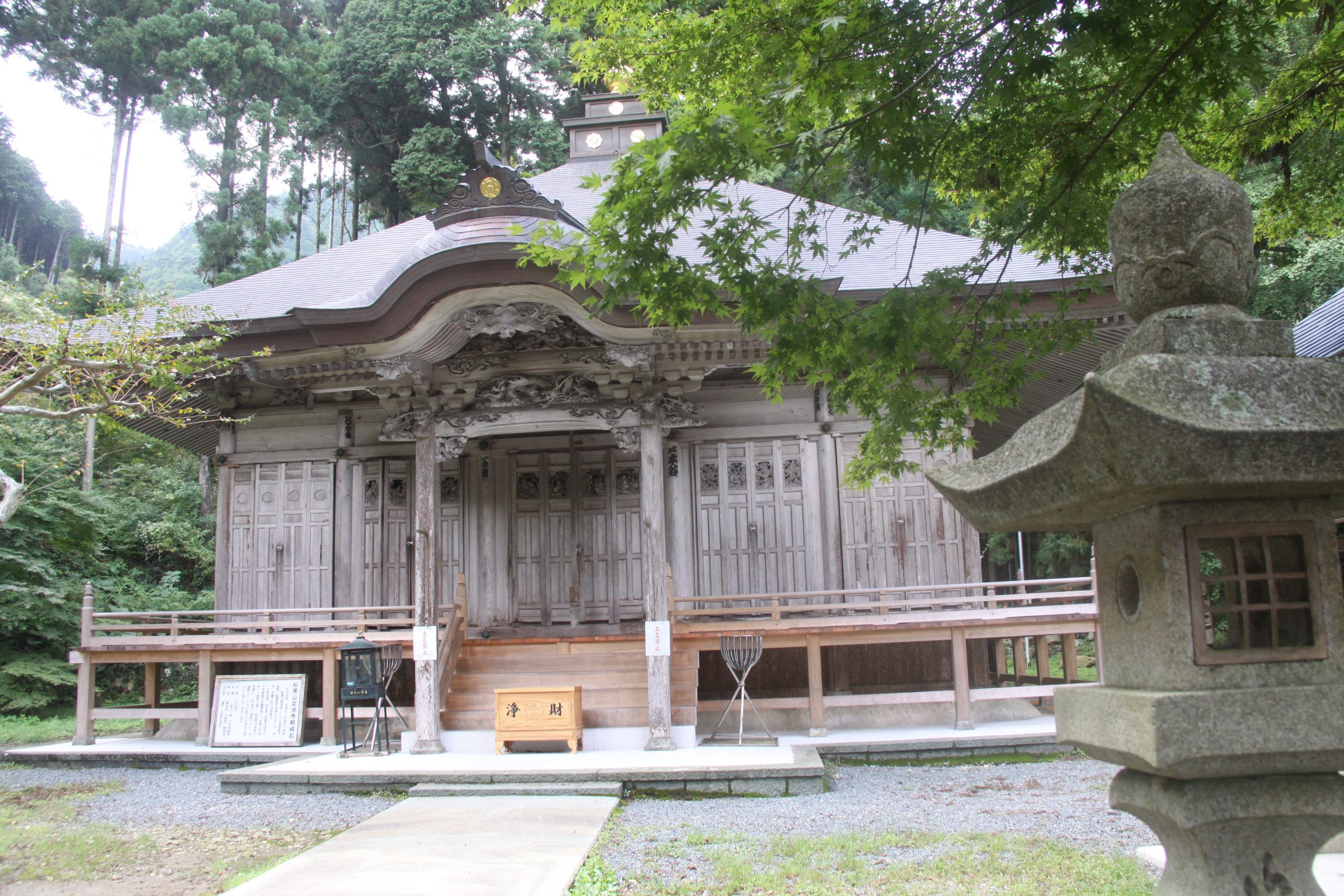 木造入母屋造りの庫裡には、阿弥陀如来、傳教大師像を安置。