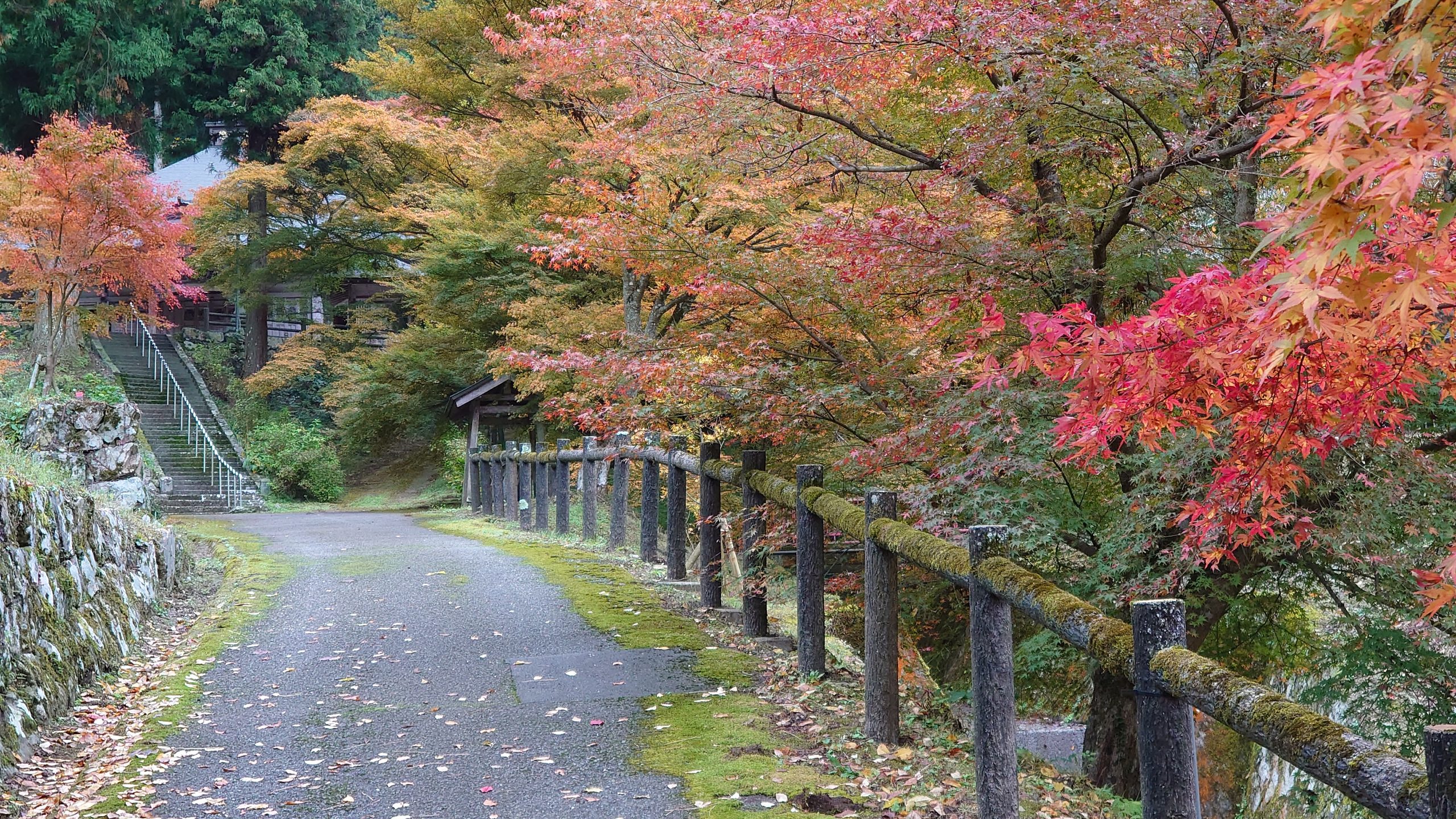 四季折々の草花、奥深い幻想的な山々や森林の風情を感じながら、本堂へと続きます。